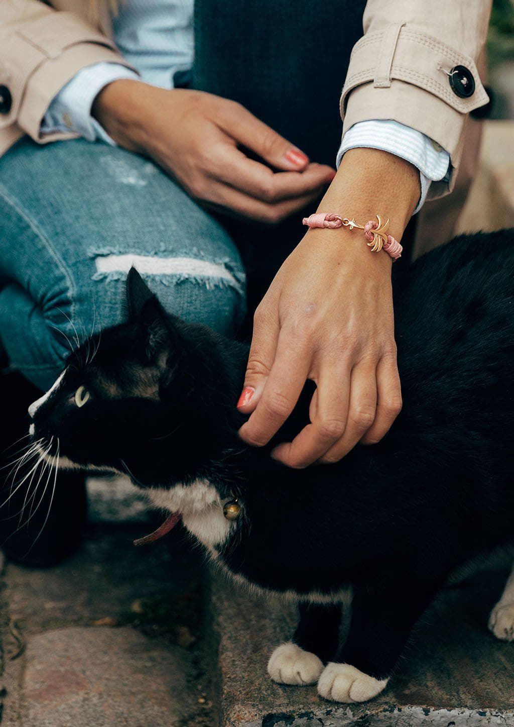 The Rosette palm bracelet is a modern take on the classic anchor bracelet. A fresh pink single braided leather band and a beautiful rose gold palm anchor. This model is an easy choice for everyone thats looking for an accessory that makes people turn their heads.